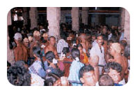 Vaikasi Visagam (May - June)A large number of devotees, numbering about two lakhs, participate in the festival. A procession of Śrī Jayanthinathar with Valli and Deivanai is conducted in the night. Skanda Sasti Festival - 7 days (October - November)Devotees numbering about five lakhs will participate in Kanda Sasti festival at Tiruchendur. On this festival occasion, devotees fast for all six days. On the sixth day Surasamharam is enacted before a gigantic crowd of devotees on the very beach where Lord Murugan fought Sura Padman. On the seventh day His Tirukkalyanam (wedding) to Teyvayanai is celebrated in a grand manner. Vows and OfferingsDevotees who take a vow place their offerings during festivals and other days. They austerely fast and carry kavadi, palkudam, offer abishegam etc. to the Lord. The Golden Chariot procession, Chandana Lebanam, Dharabhishegam, and Dharahomam are performed by devotees in fulfillment of their vows. Devotees who perform such austerities get relieved of their mental worries; the unmarried get married; and the childless beget children by the grace of Arulmigu Subrahmanya Swami.